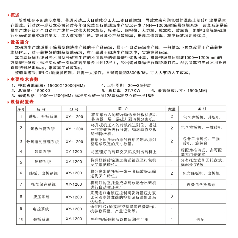 XY-1200型自動(dòng)碼垛系統(tǒng)